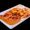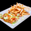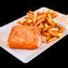 150g trhaného vepřového, chedar, BBQ omáčka, domácí hranolky, tatarská omáčka |