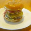 Bulka, tatarská omáčka, ledový salát, rajče, 150g mletého hovězího, 3*chedar, slanina, kyselá okurka