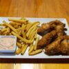 200g grilované krkovice, omáčka s pepřem, domácí hranolky, tatarská omáčka