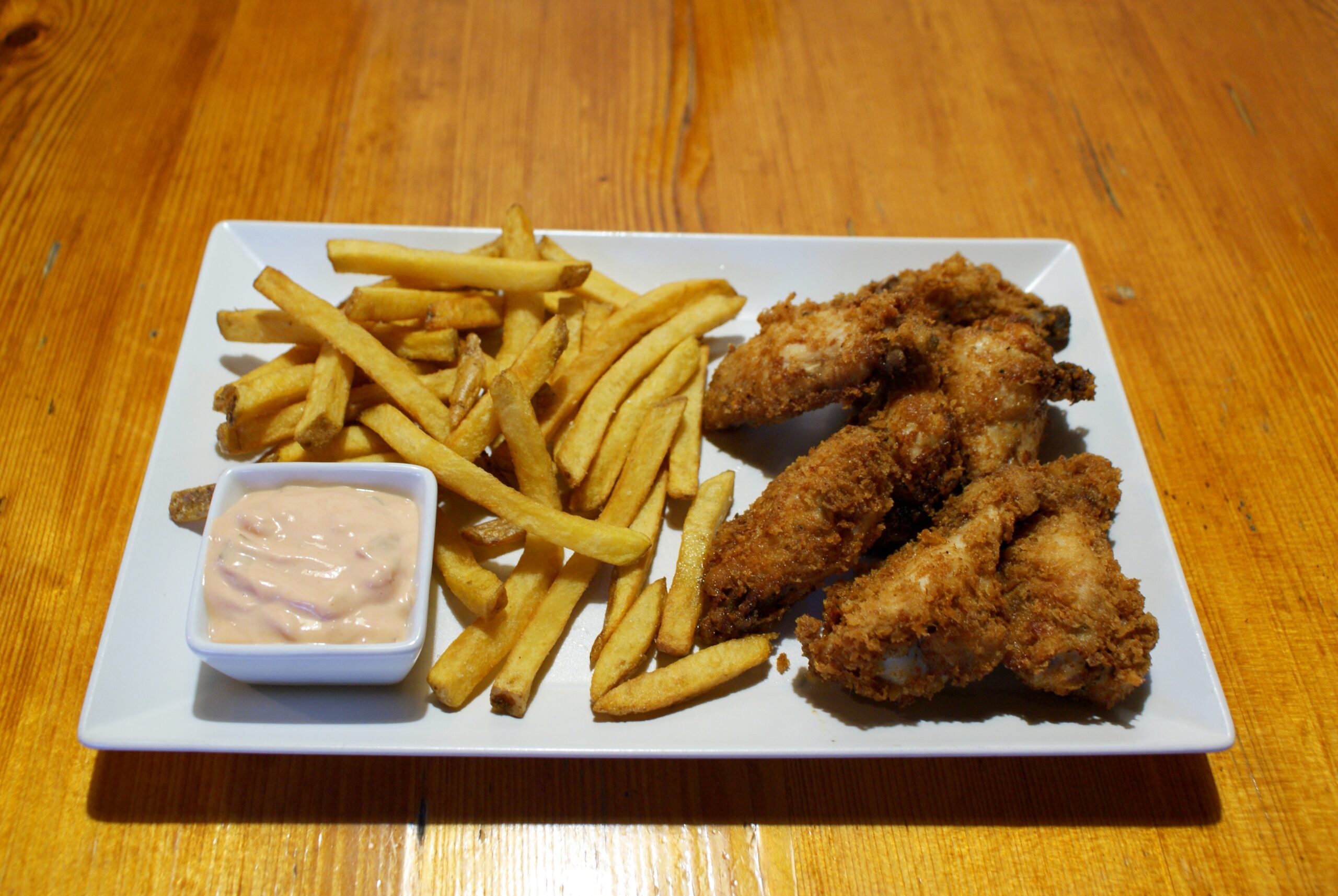 400g smažených kuřecích křídel, domácí hranolky, domácí tatarka